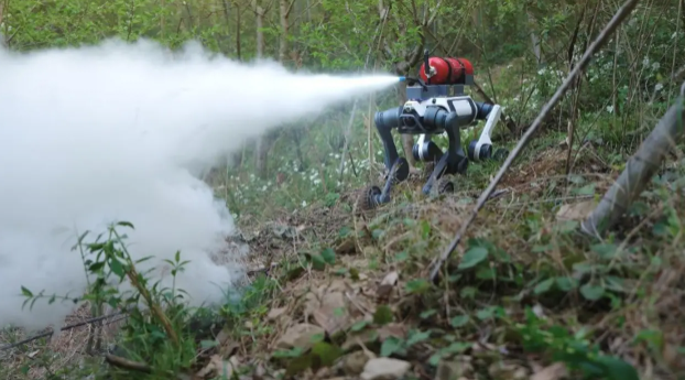 LYNX M20 Wheeled-Legged Robot Acting as a Quadruped Water Cannon Firefighting Robot in Rescue Operations
