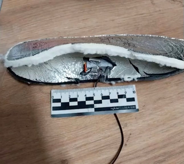 The explosives in each pair of insoles weighed 1.5 grams and would have detonated when the insoles were connected to a power source.