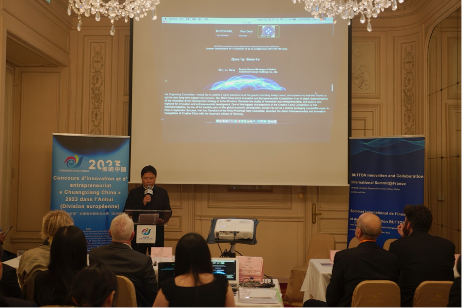 The Semi-finals of the 2023 "Chuangxiang China" Anhui Province Innovation and Entrepreneurship Competition European Division were successfully held in Paris, France on November 20. Representatives from the Anhui Provincial Investment Group and Hefei High-tech Zone, including Wang Shijie, Deputy General Manager of Anhui Investment Group and Chairman of Anhui Railway Investment Company; Lu Ping, Deputy Secretary of the Party Working Committee of Hefei High-tech Zone; Xu Yong, Director of the Investment Bureau of Hefei High-tech Zone; Dong Jianbo, Director of the Community Innovation Management Center of Hefei High-tech Zone; Wang Qiang, Chairman of Hefei High-tech Investment Group; Yang Dejin, Director of the Emergency Management Bureau of Hefei High-tech Zone; Wang Yan, Deputy General Manager of Anhui High-tech Industry Investment Company; Cai Hao, Deputy General Manager of Anhui Zhongan Chuanggu Science Park Company, and other representatives of the host and organizers attended the event.