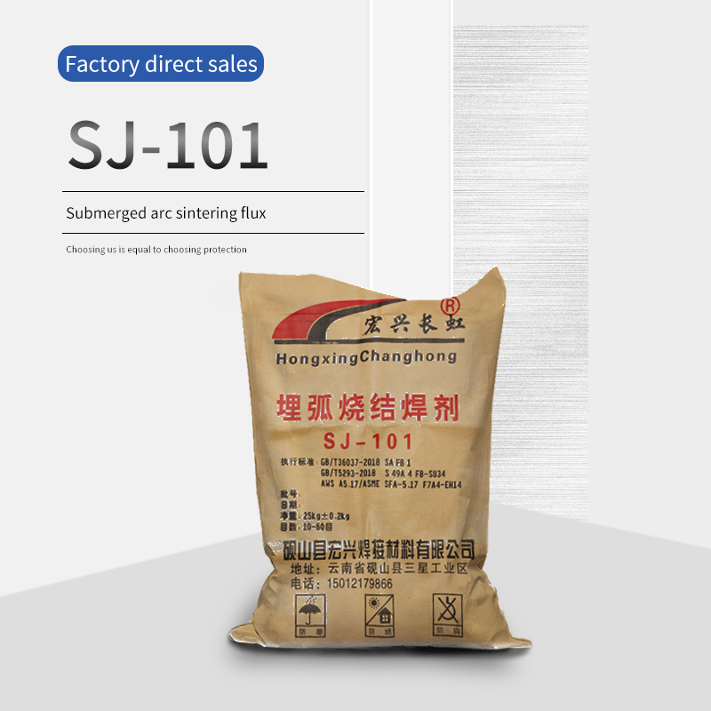 Sintered flux sj101 is a fluorine-alkali granular sintered flux. High alkalinity value, low content of impurity components p, s. Easy slag removal, excellent mechanical properties, smooth welding bead, widely used in pipeline steel x60, x65 welding and steel structure. Due to the diffused hydrogen content (≤5ml/100g) and low oxygen content in the weld, high toughness and high crack resistance can be obtained even at low temperatures. It can be used for multi-wire welding, double-sided single-pass welding. The welding speed can reach 1.6-1.9 meters per minute.