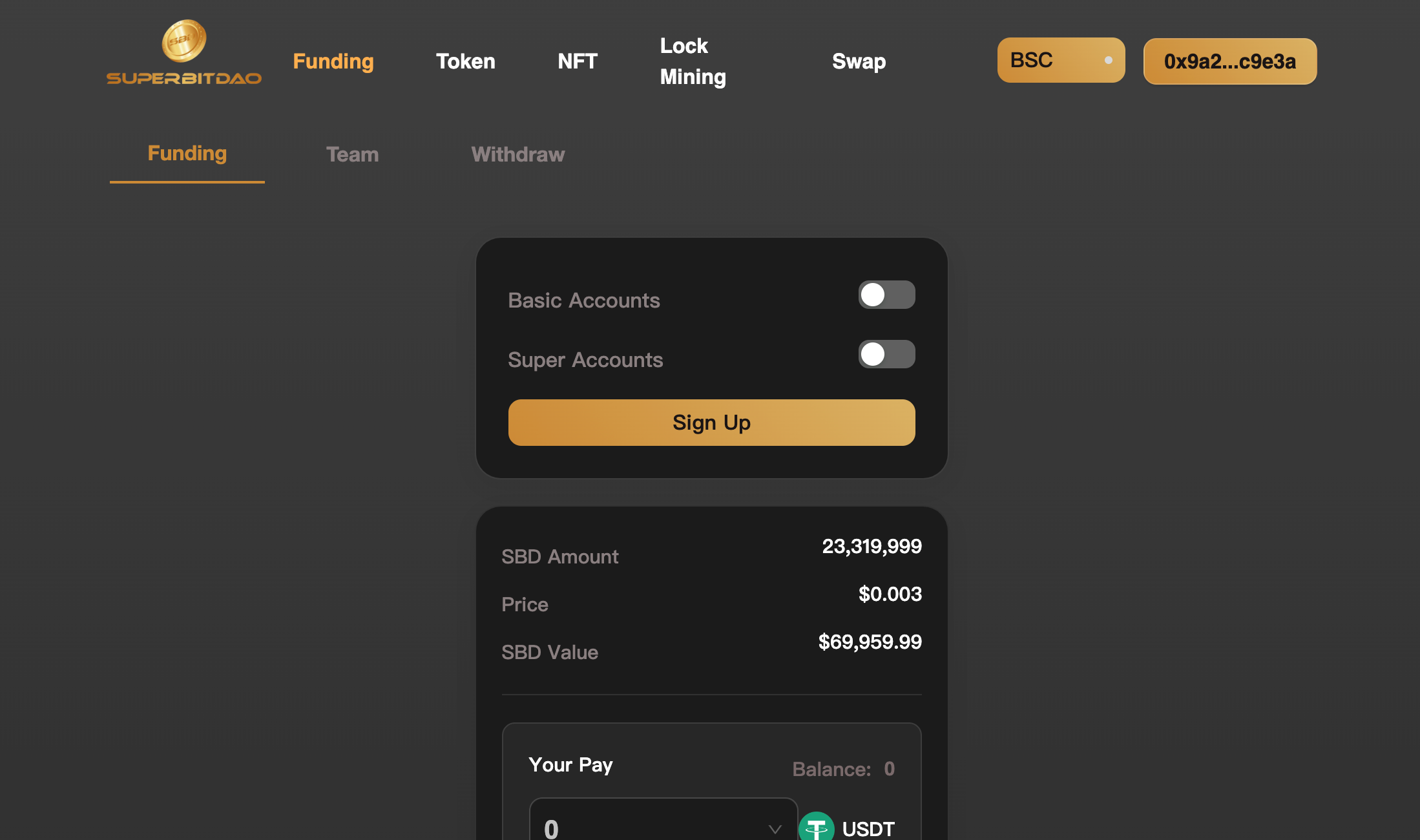 SuperBit DAO's mission is to create a crypto DAO community of a million members worldwide. By participating in SBD's public offering, you become part of this mission, helping to build a better platform for millions of community members worldwide, collectively exploring the limitless possibilities of the crypto world.