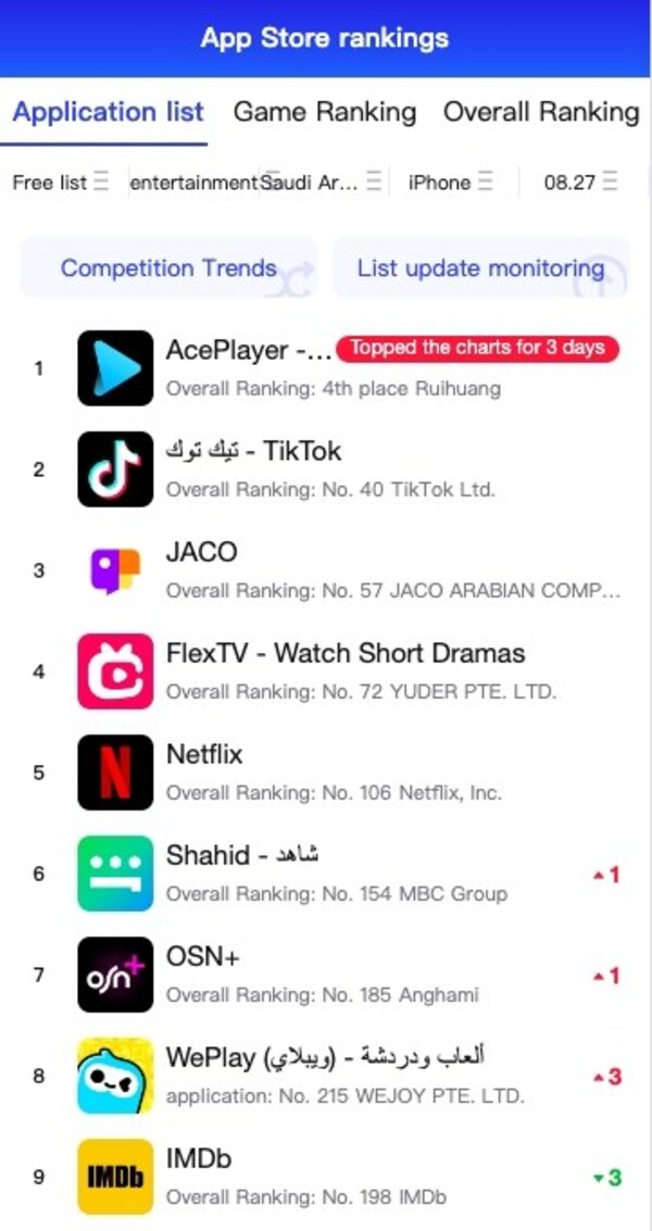 PALO ALTO,Calif.,Aug. 28,2024 -- Mega Matrix Corp. ("MPU" or the "Company") (NYSE American: MPU),today announced that FlexTV,its short drama streaming platform,has ranked No.4in the App Store Entertainment Chart (Free Apps,Saudi Arabia) as of August 27,2024.