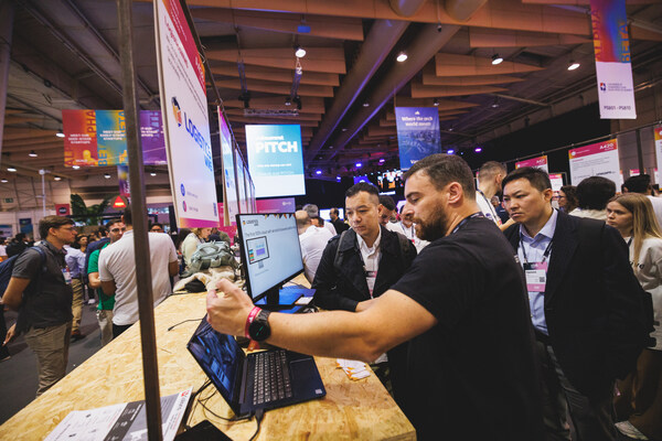 Members of the Macao Technological Innovation Exploration in Lisbon visit exhibit booths and share ideas with Portuguese tech enterprise representatives Nov. 12 at the Web Summit.