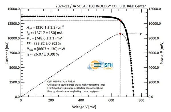 JA Solar’s Bycium+ Cell Achieves Record-Breaking 748.6mV Open-Circuit Voltage Certified by ISFH