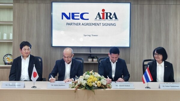BANGKOK,Jan. 10,2025 -- In continuation of theMOU signed between NEC Corporation Thailand (NEC Thailand) and AIRA Factoring Public Company Limited (AIRA Factoring) in May 2024,NEC Thailand and AIRA Factoring have now formed a strategic partnership to launch a Digital Supply Chain financing platform. Through this collaboration,NEC Thailand and AIRA Factoring will provide a range of key services,including utilizing "TASConnect",a solution owned by SCV Research and Development PTE. LTD.,and other digital capabilities of NEC to create robust and efficient supply chain finance programs. Additionally,the partnership will focus on client acquisition by targeting specific groups and markets to identify and capitalize on new business opportunities.