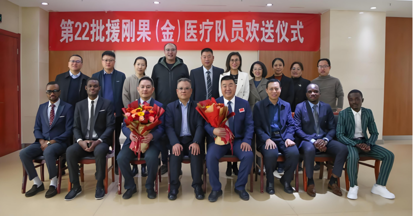 (La imagen muestra la ceremonia de despedida de la 22ª brigada médica de asistencia al Congo, fuente de la imagen: Hospital de Tórax de la provincia de Hebei, China.)