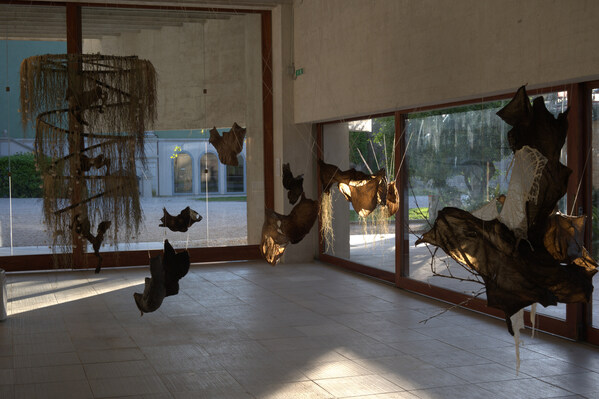 Foreground: Máret Ánne Sara,'Gutted – Gávogálši',(2022). Background: Máret Ánne Sara,'Ale suova sielu sáiget',(2022). Exhibition view: ‘The Sámi Pavilion’,59th International Art Exhibition – La Biennale di Venezia,'The Milk of Dreams',Venice (23 April–27 November 2022). Photo: Michael Miller / OCA.