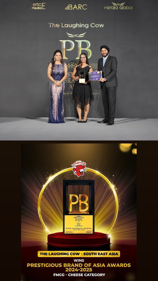 SINGAPORE,March 5,2025 --The Laughing Cowhas been honored with the Prestigious Brands of Asia 2024-25 award in the FMCG - Cheese category. This recognition,presented at the Global Business Symposium hosted by Herald Global & ERTC Media in Bangkok,Thailand,was bestowed after an intensive screening process. The recognition is a testament to The Laughing Cow's remarkable achievements in expanding awareness and innovative product launches in the cheese category in Southeast Asia.