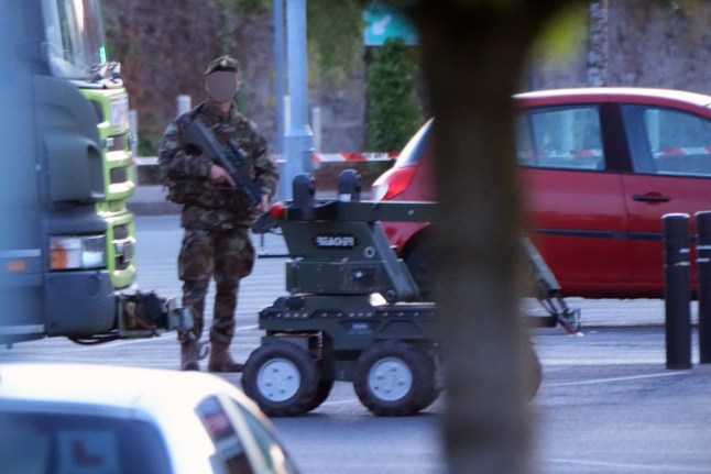 The arm’y bomb squad was called in as the suspect is thought to have been armed with explosives (Picture: Niall Carson/PA Wire)