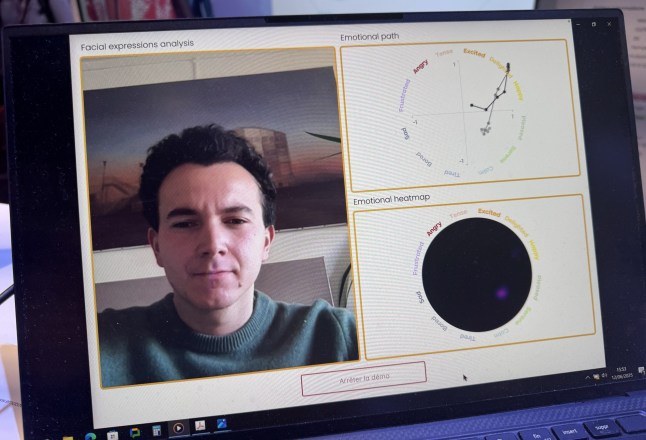 We tried the emotion mapping software on display at the Viva Tech conference in Paris,and a realtime image showed reporter Jen Mills as appearing both ‘pleased’ and ‘bored’ at the same time.