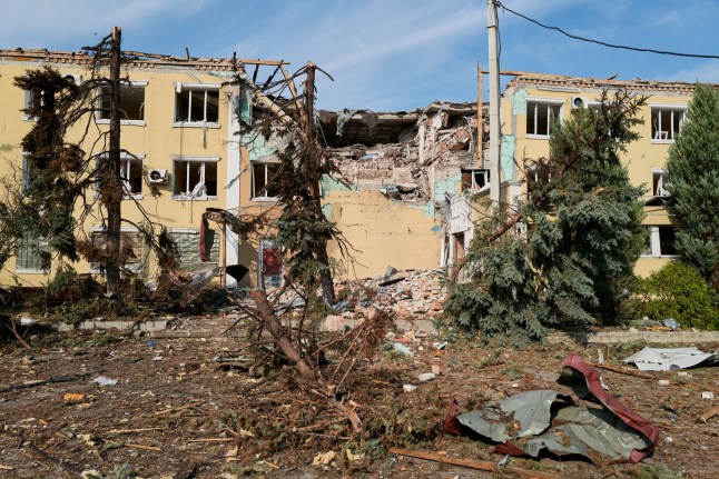Hotel Sloviansk,once a refuge for media professionals at the start of the Donbas war in 2014,following a Russian strike last week (Picture: Getty Images)