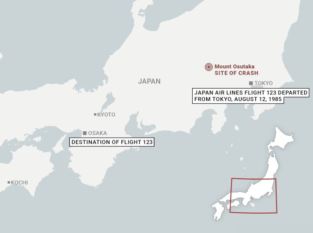 The doomed JAL123 flight left Tokyo towards Osaka on August 12,1985 (Picture: Datawrapper)