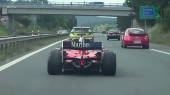 The racing car is often described as a Ferrari because of the logos on its body,but it is reportedly a a Dallara GP2/08 (Picture: Idnes)