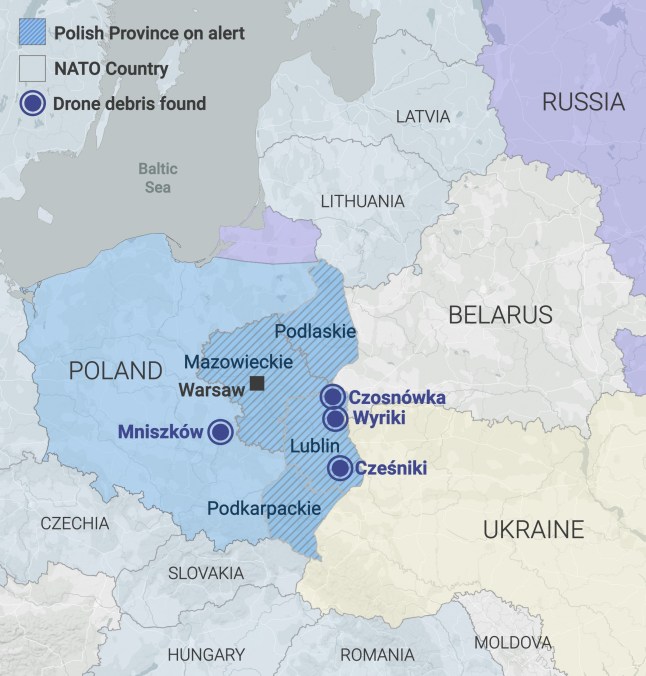 A map showing where drone debris were discovered in Poland last week (Picture: Metro)After that meeting on Sunday evening,a ministry statement said Romania had ‘conveyed its strong protest against this unacceptable and irresponsible act,which constitutes a violation of (its) sovereignty.’It added: ‘Such recurring incidents contribute to the escalation and amplification of threats to regional security.’Disclaimer: This article is reproduced from other media. The purpose of reprinting is to convey more information. It does not mean that this website agrees with its views and is responsible for its authenticity, and does not bear any legal responsibility. All resources on this site are collected on the Internet. The purpose of sharing is for everyone's learning and reference only. If there is copyright or intellectual property infringement, please leave us a message.