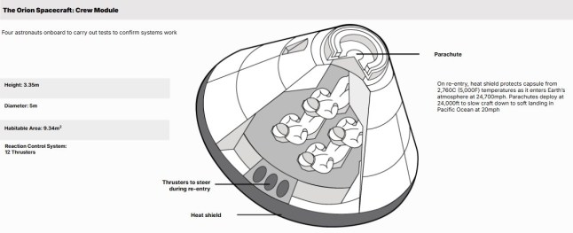 The dense material the Orion is made of will act as a shield,Nasa says.